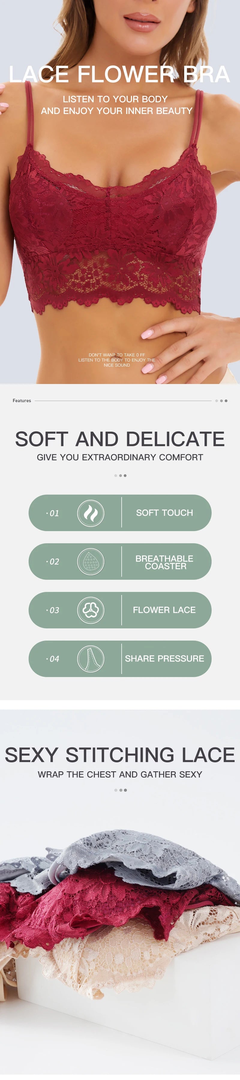 1PC Women Lace Bras Top Comfortable Bralette Solid Color Sexy Underwear Vest Female Hollow Out Wireless Lingerie Seamless Bra