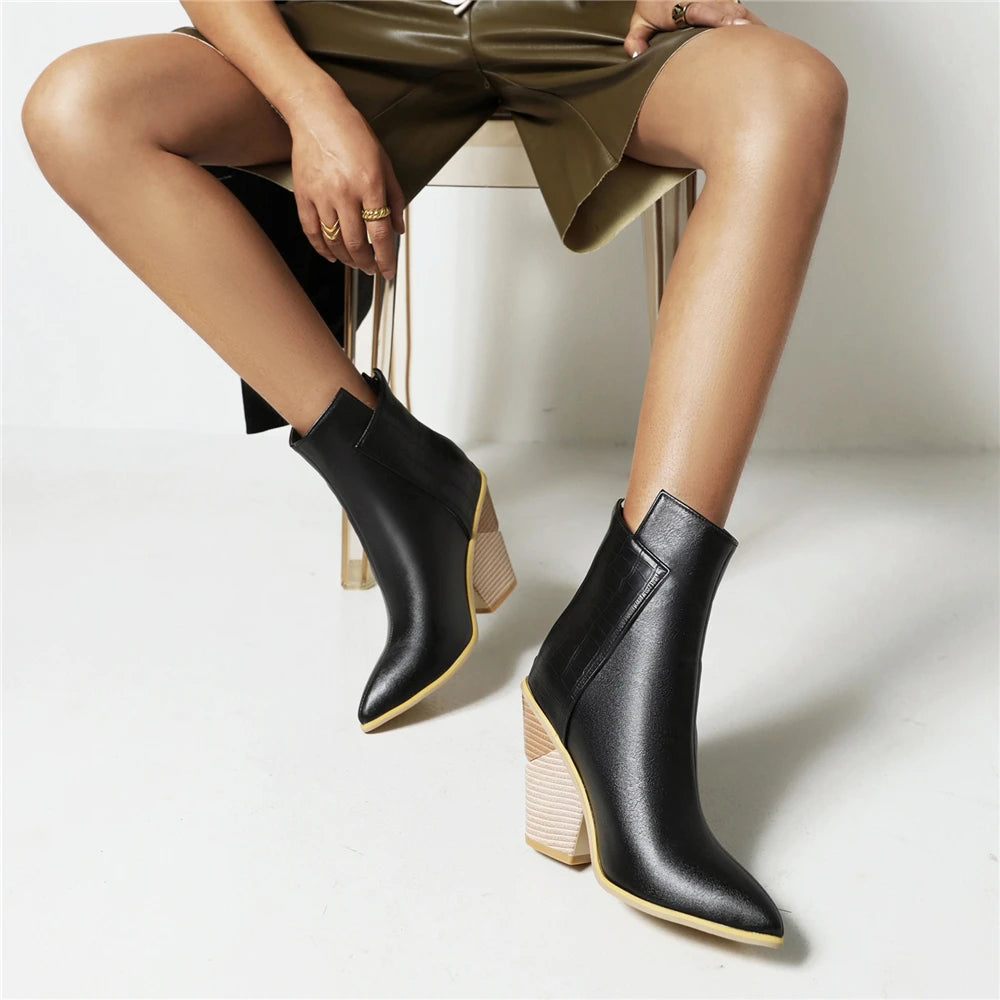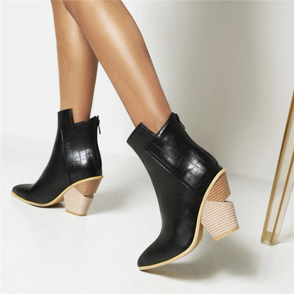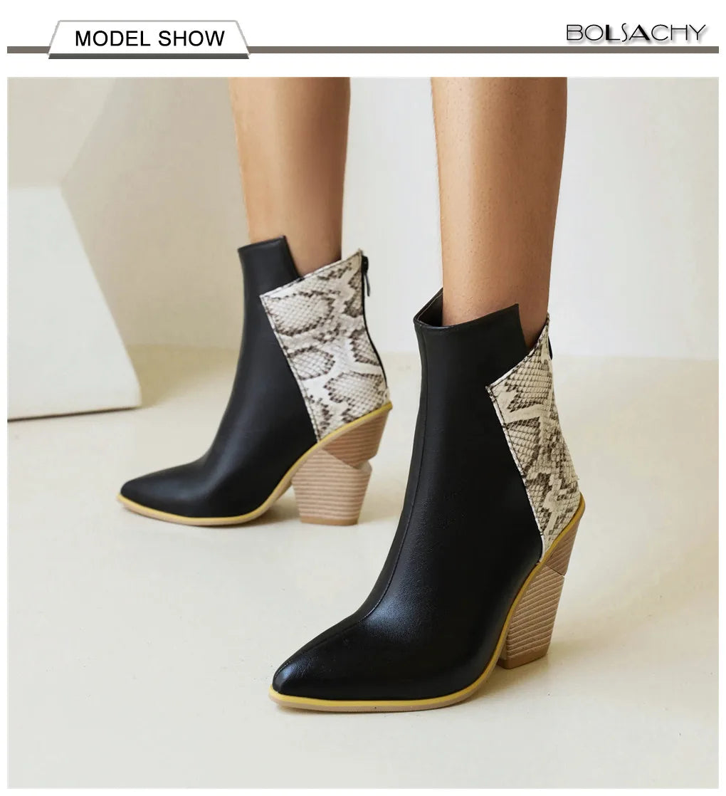 2024 Autumn Women Boots Pu Leather Wedge High Heel Ankle Boots Winter Cowboy Boots Fashion Western Boots Woman Denim Shoes Brown