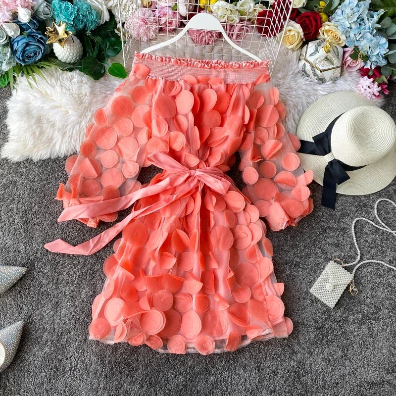 2024 Spring Sexy off shoulder dresses bandage short Dress summer flower Party casual Women beach holiday a-line elegant dress