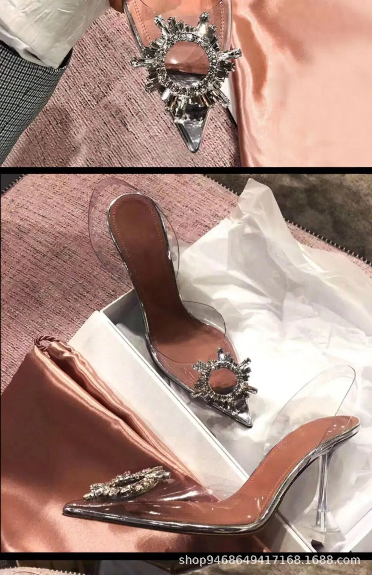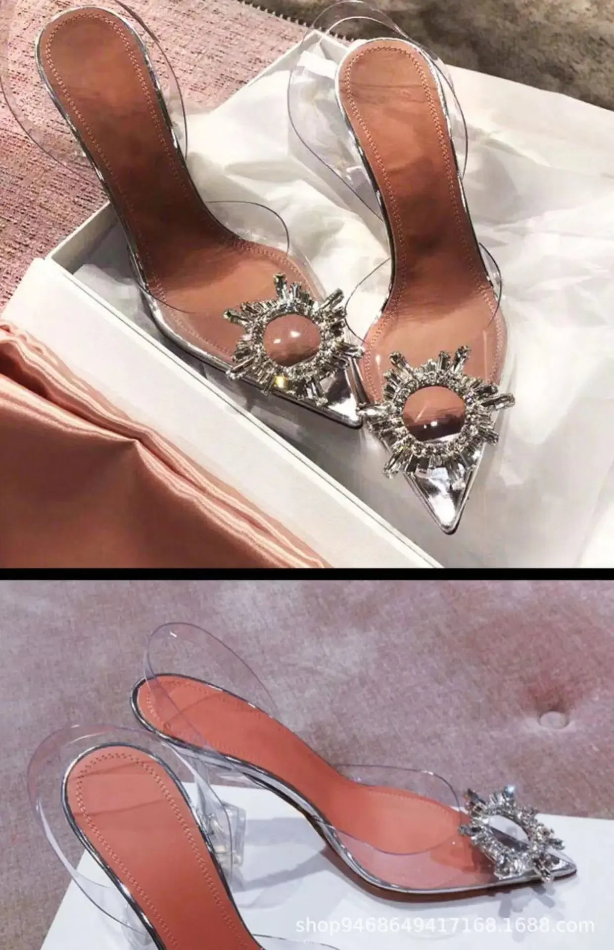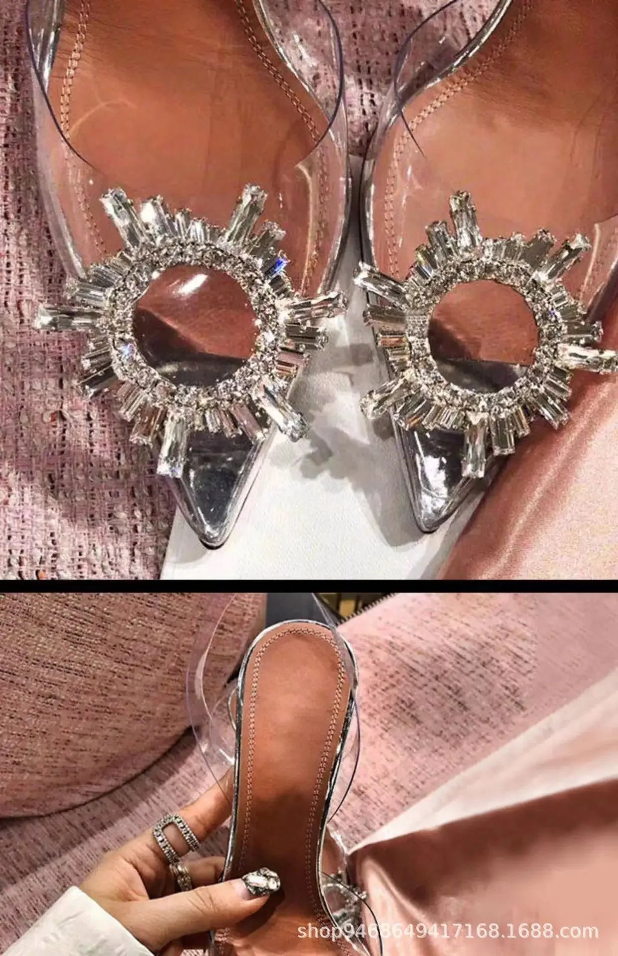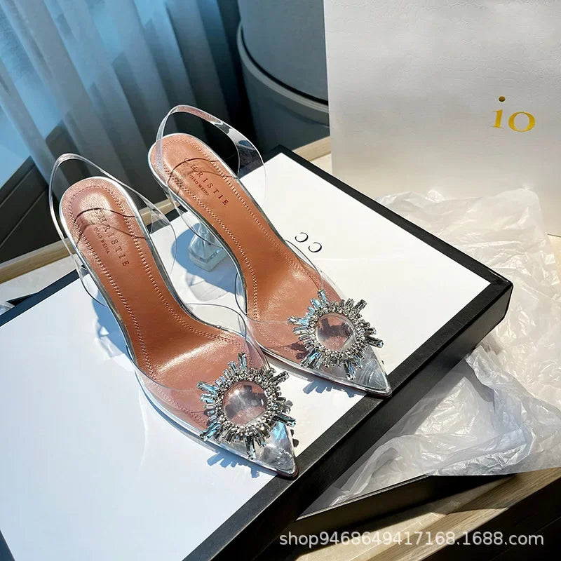 2024 Women Pumps Luxury Crystal Slingback High Heels Ladies Summer Shoes Pumps Woman Heeled Party Wedding Shoes Plus Size