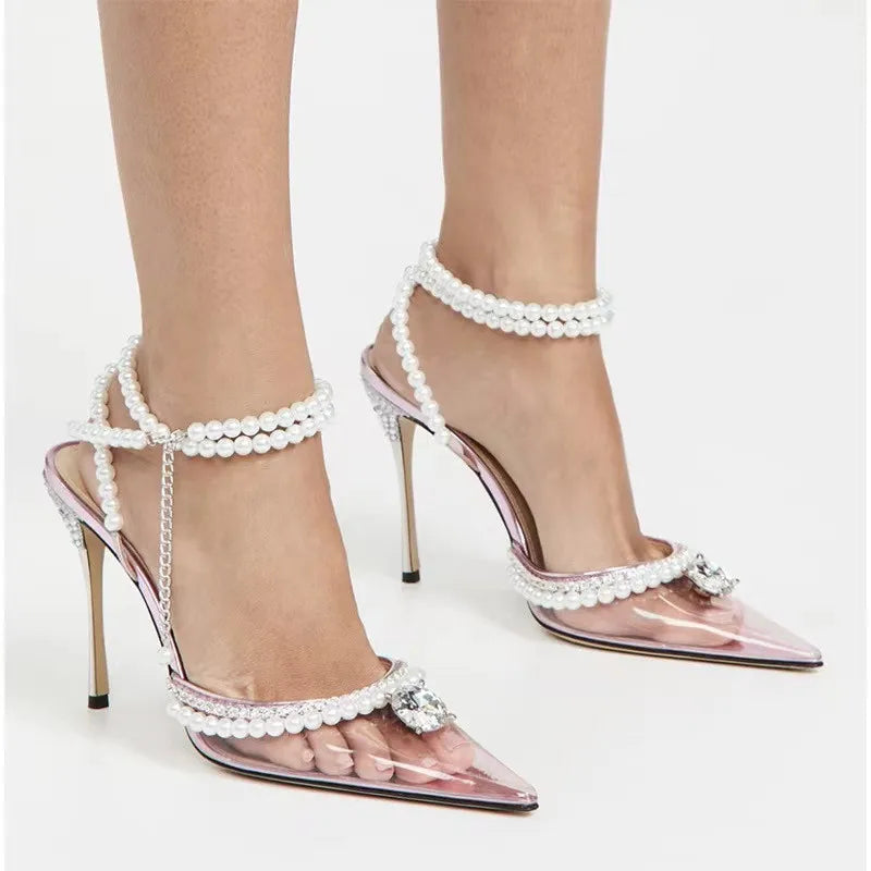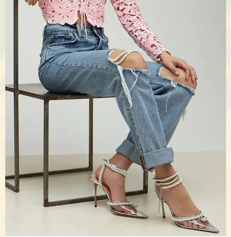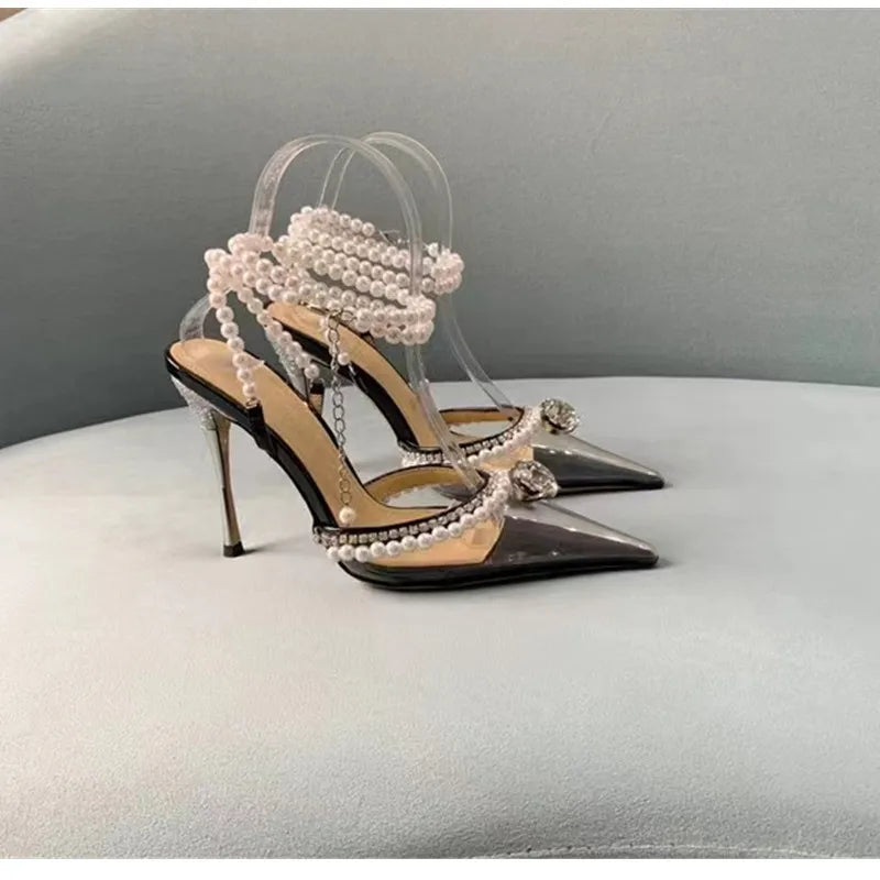 Clearance!!! Luxury Rhinestones Transparent PVC High quality Women Pumps Sandals Fashion Summer Stiletto High heels Party Shoes