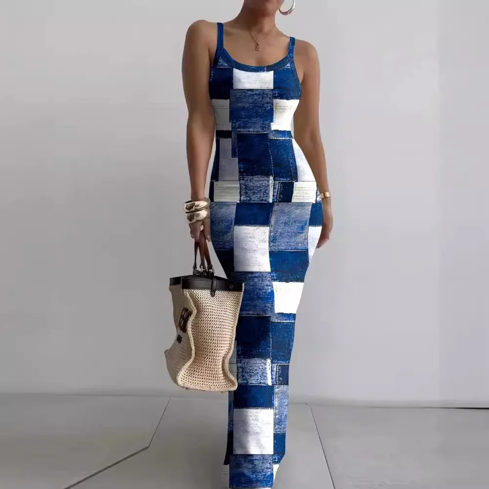 CM.YAYA Summer Women Sleeveless Strap O-neck Sexy 2024 Summer Long Evening Dress Knit Ribbon Night Club Party Maxi Dresses