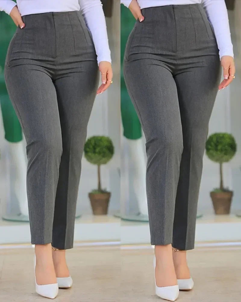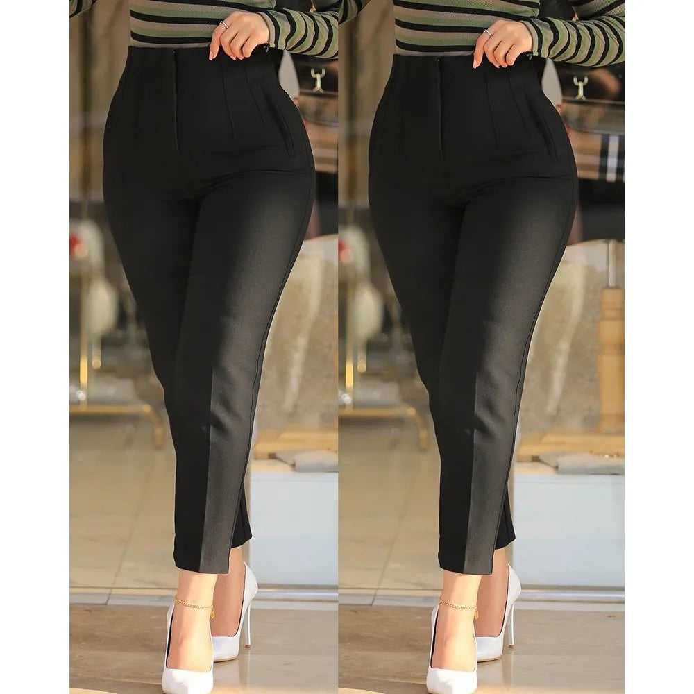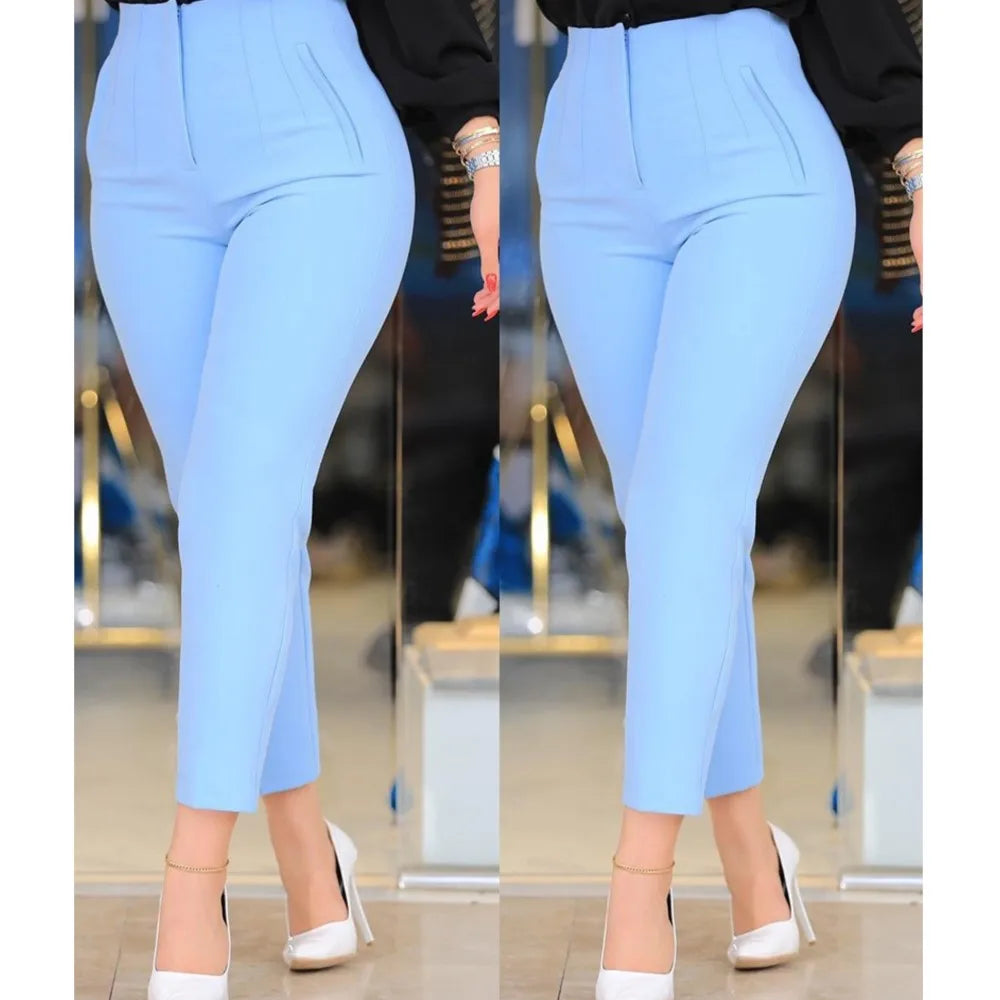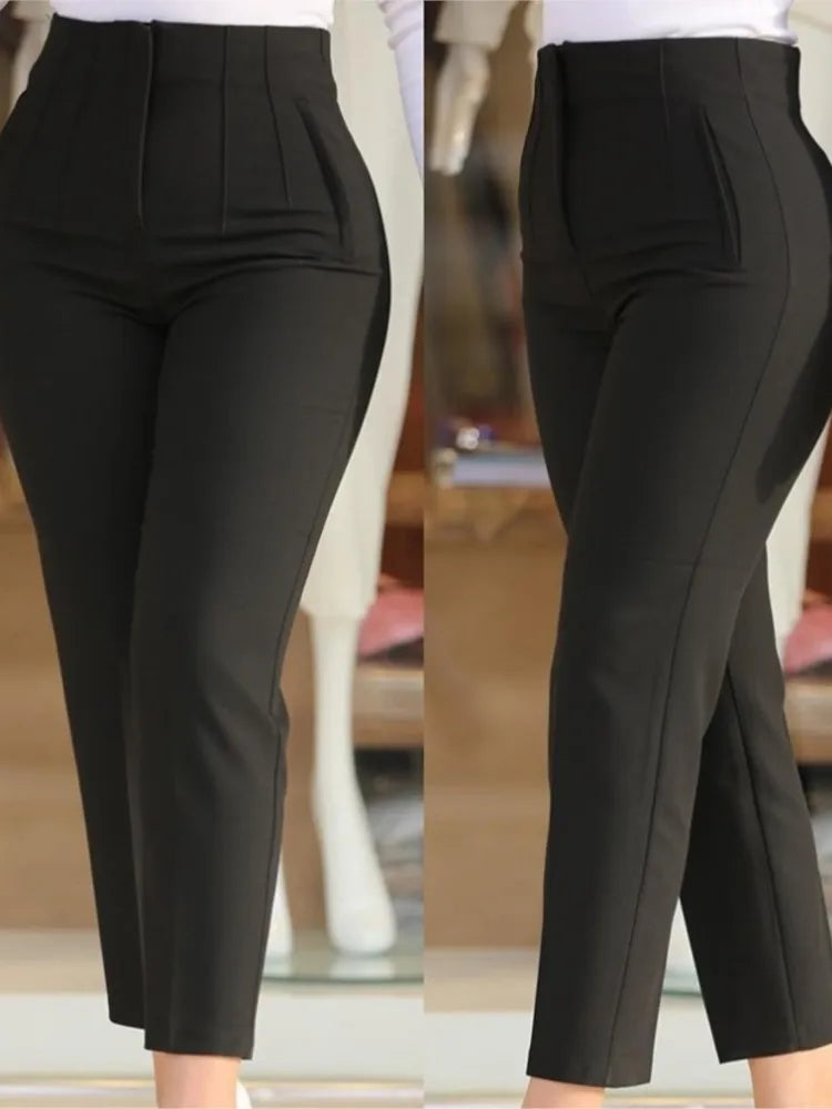 Elegant Pleated Waist Work Pants For Women White All-Match Daily OL Laides Fashion Office Formal Wear High Waisted Trousers