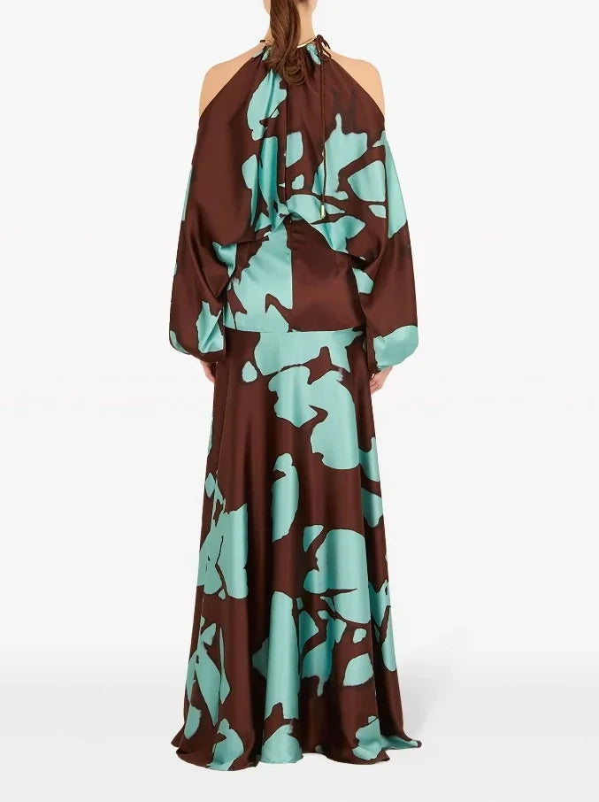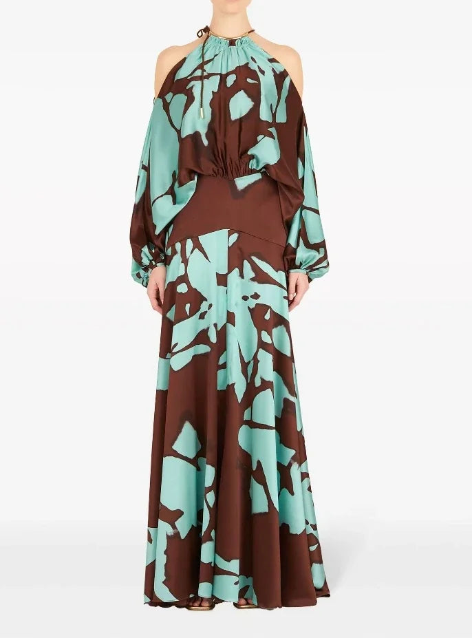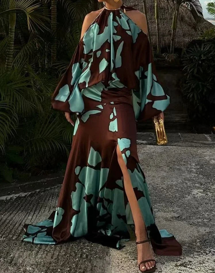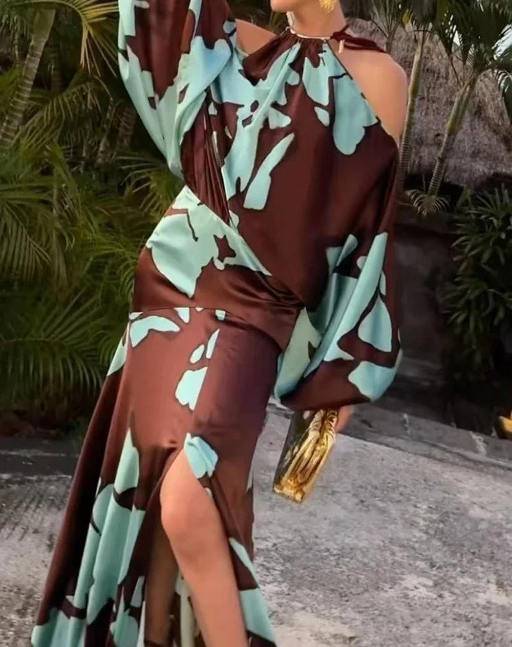 Evening Dresses Vacation Style Elegant Socialite Printed Off Shoulder Slit Dress