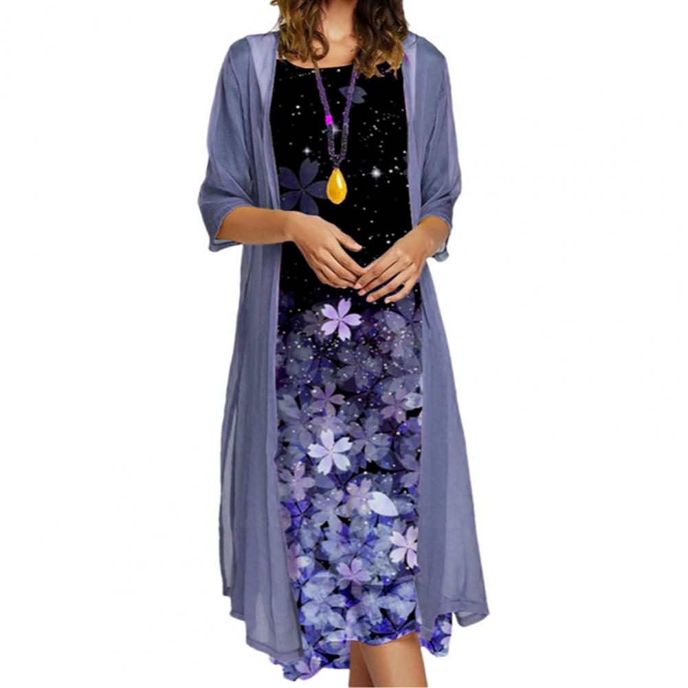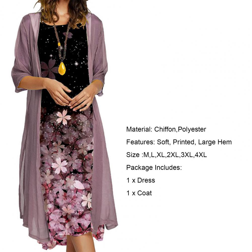 Female 1 Set Stylish Vintage Round Neck Dress Two-Piece Ladies Dress Set Floral Print for Party