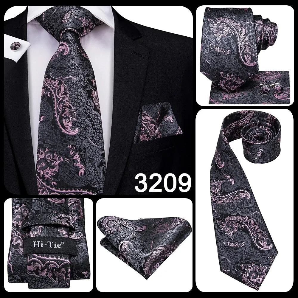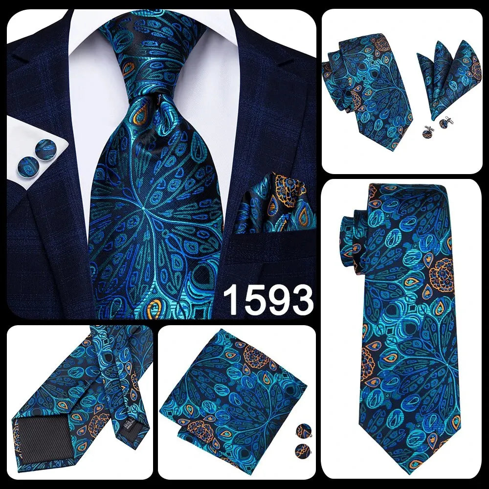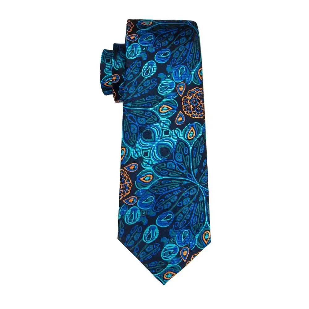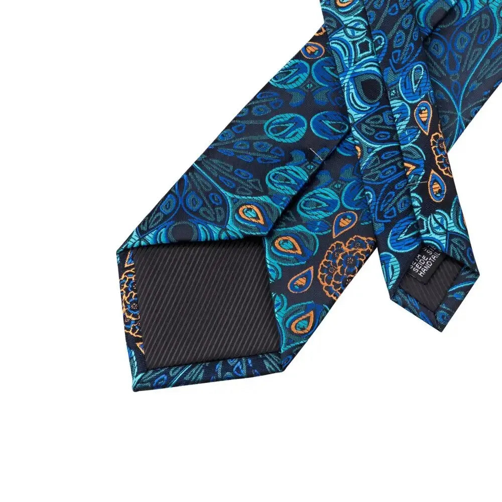 Hi-Tie Peacock Blue Novelty Designer Silk Wedding Tie For Men Hanky Cufflinks Gift Mens Fashion Necktie Set Business Party