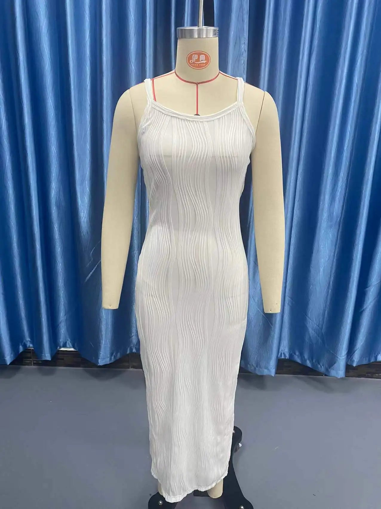 Mandylandy Tight Sexy Bodycon Dress Women Summer Slim Fits High Waist Camis Sleeveless Dress High Waist Skinny Long Dresses