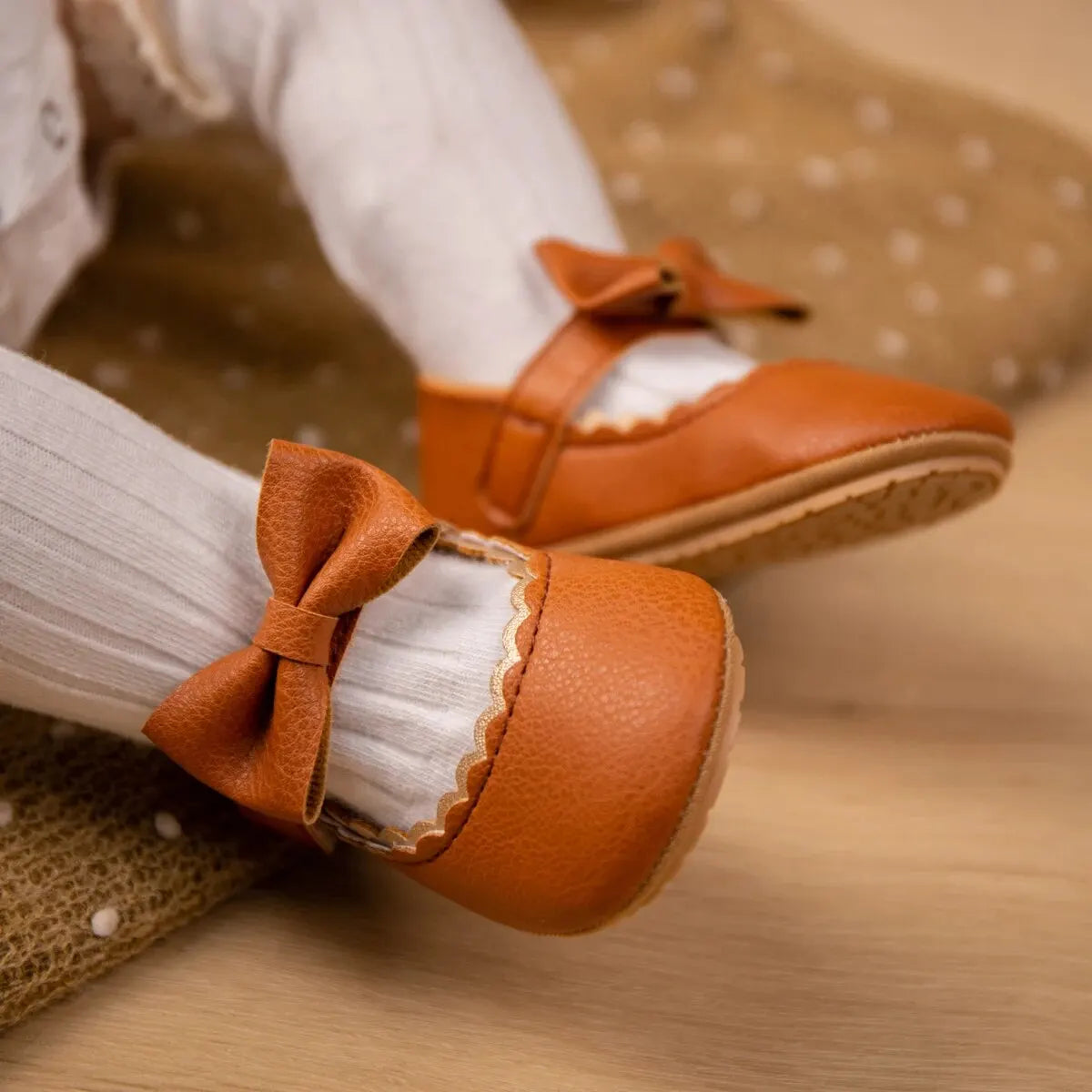 Meckior 2024 New Baby Girls Shoes Bowknot Party Dress First Walker Anti-slip Non-slip Rubber Sole Infants Girl Crib Shoes