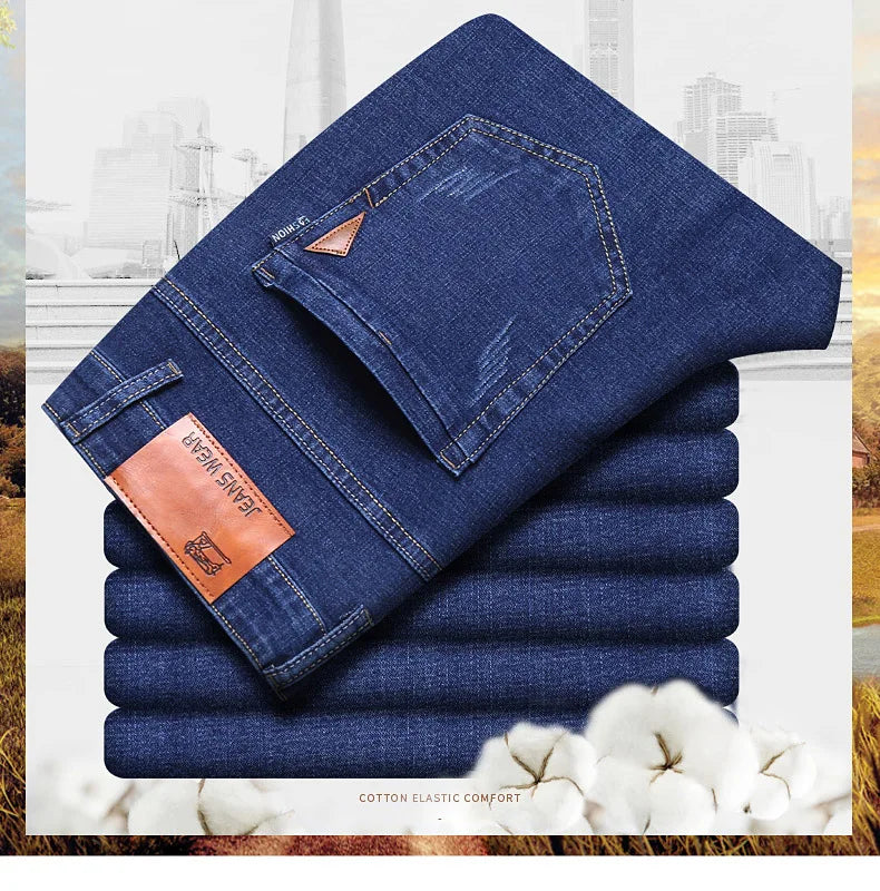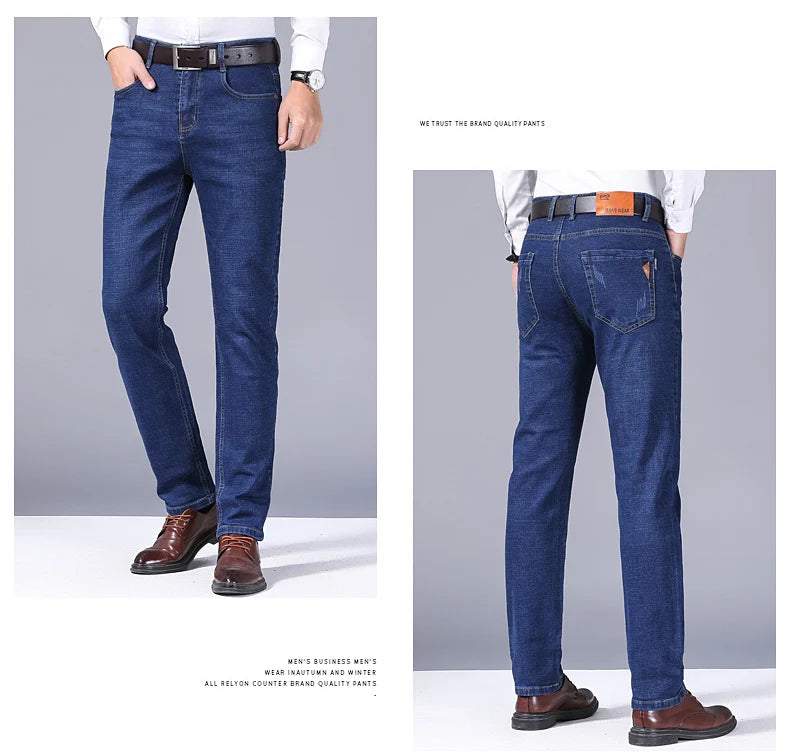 Men Fashion Straight Jeans Men 2024 New Stretch Slim Fit Pants Comfortable Soft Business Denim Trousers Male Brand Clothing