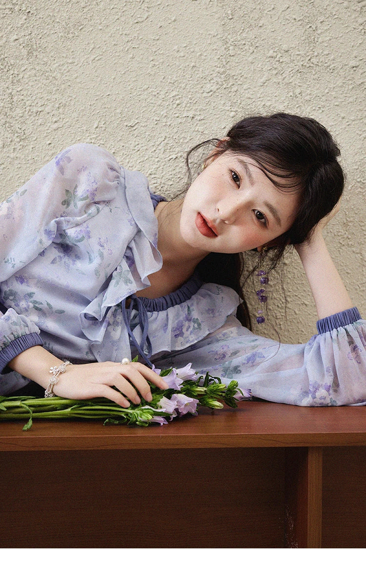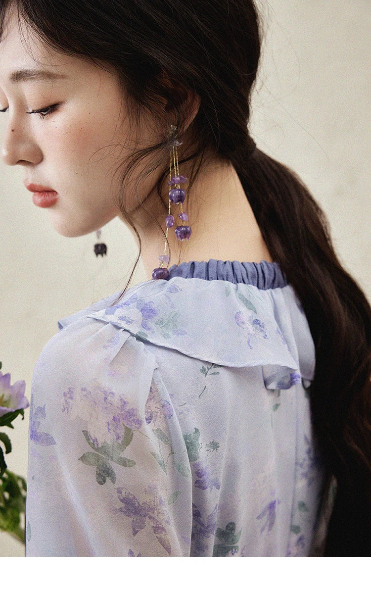 MISHOW Print Spring Summer Dress for Women New 2025 Ruffled V-neck Long Sleeve Blue French Dresses Female Fashion MXE15L2139