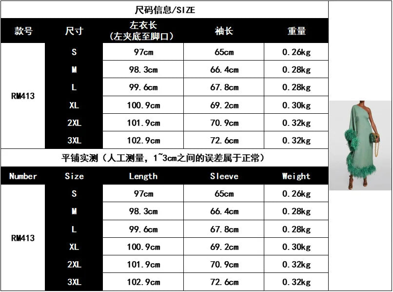 New Spring/Summer New Women's Feather One Shoulder Large Swing Evening Dress