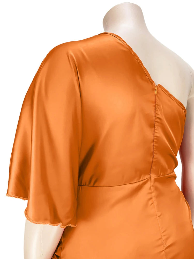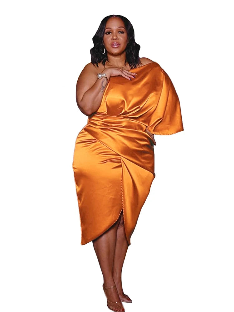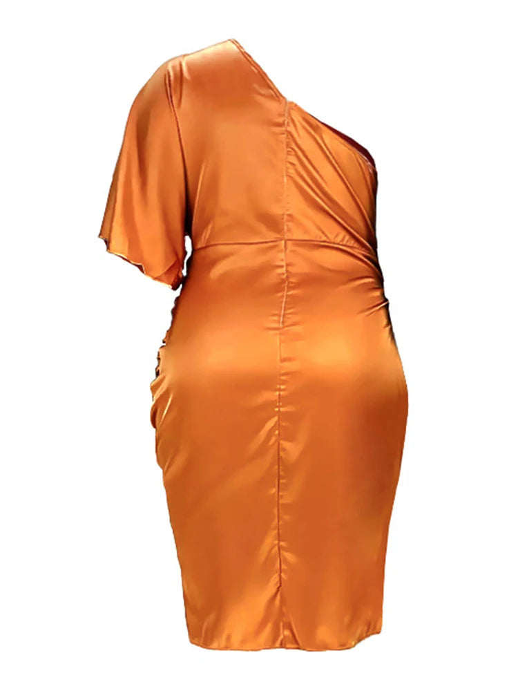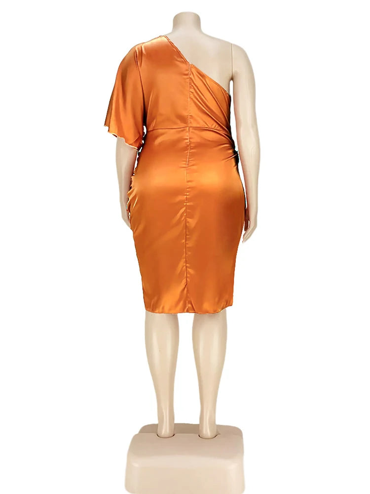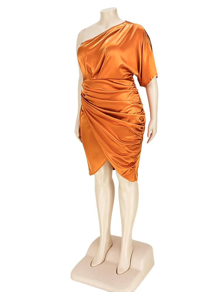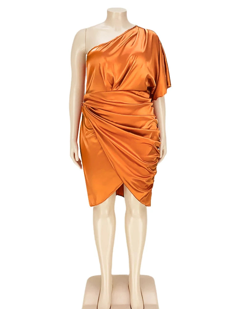 Plus Size Women Clothing One Shoulder Wedding Dress Big Lady Elegant Satin Short Dress Dresses 5xl Wholesale Bulk Dropshipping