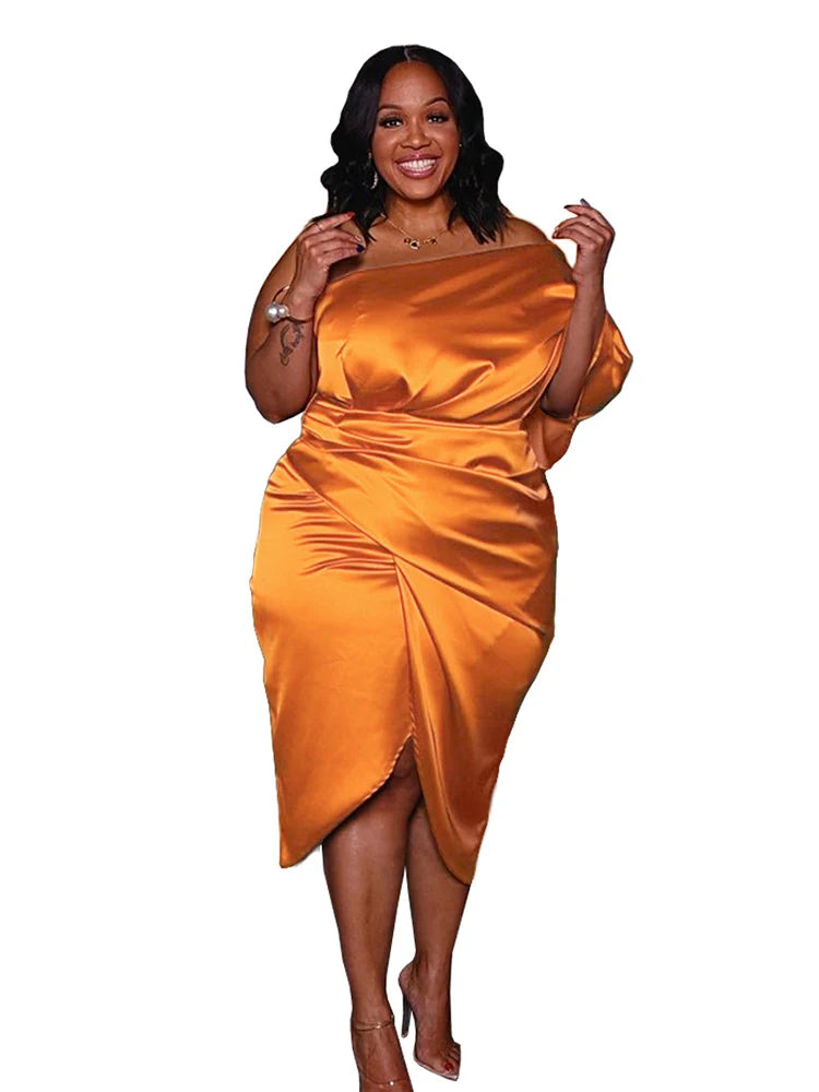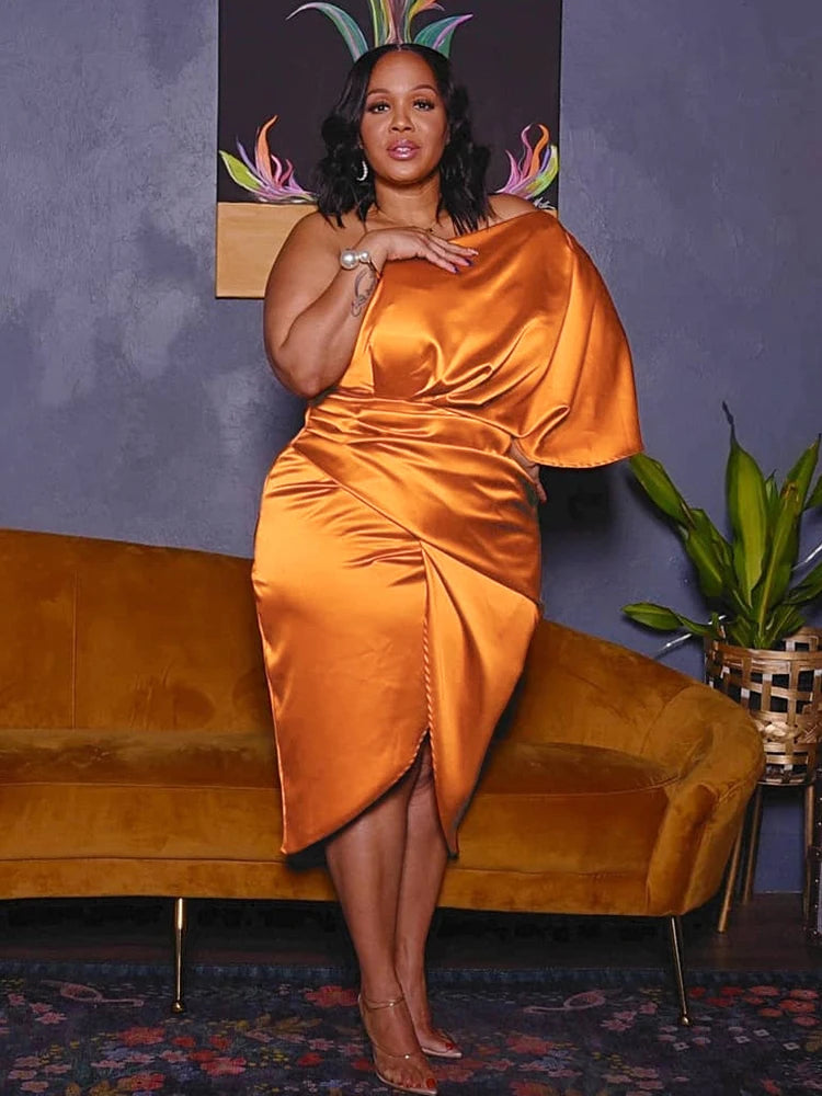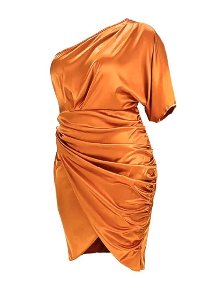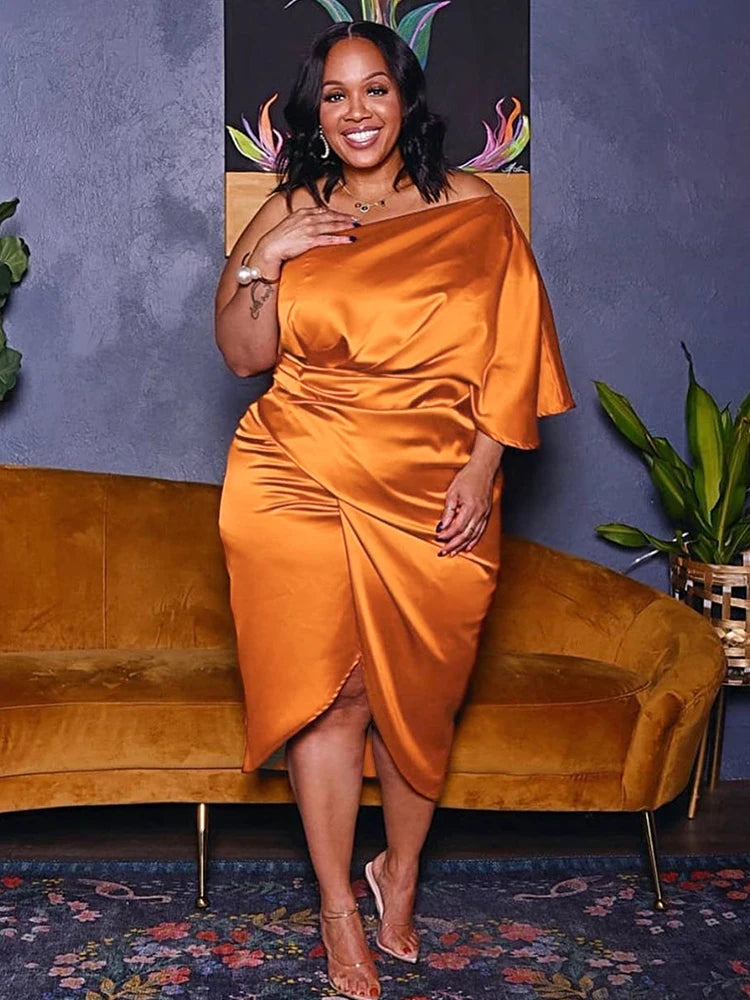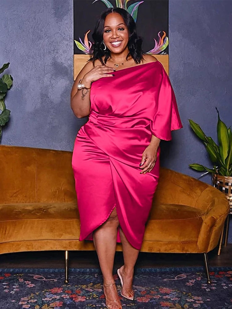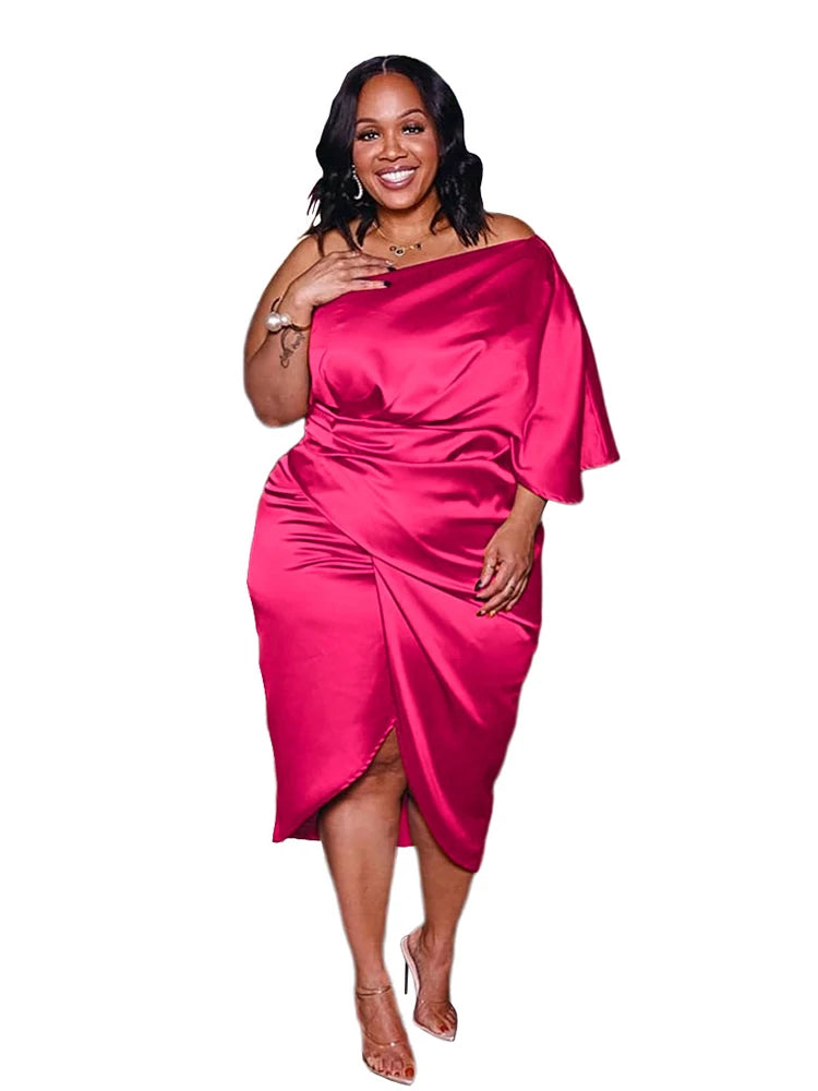 Plus Size Women Clothing One Shoulder Wedding Dress Big Lady Elegant Satin Short Dress Dresses 5xl Wholesale Bulk Dropshipping