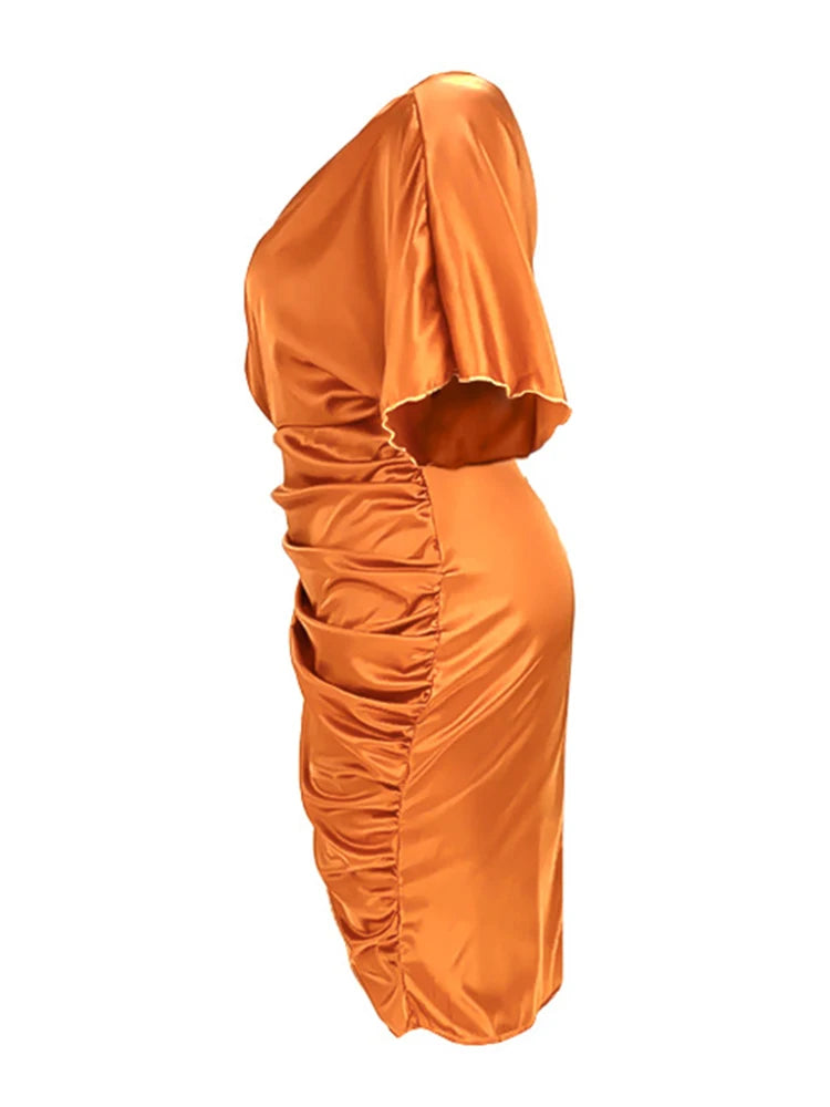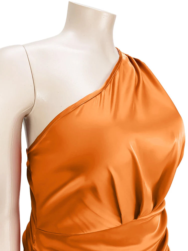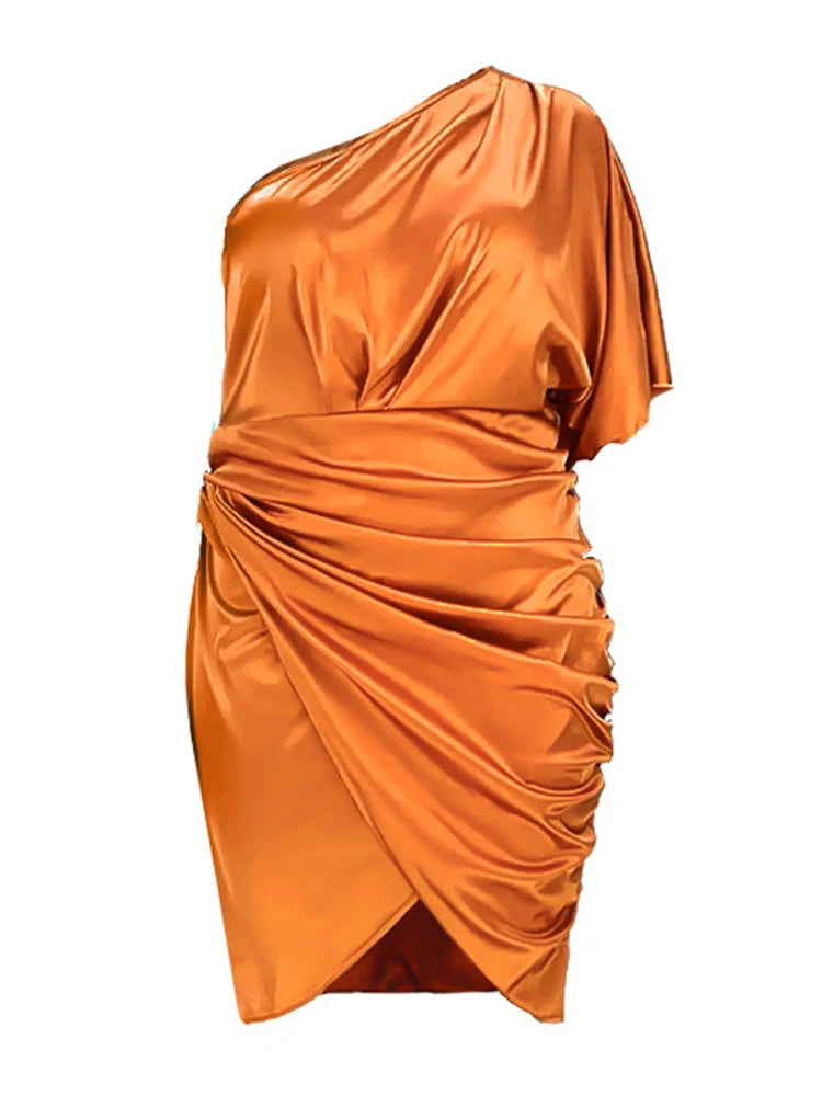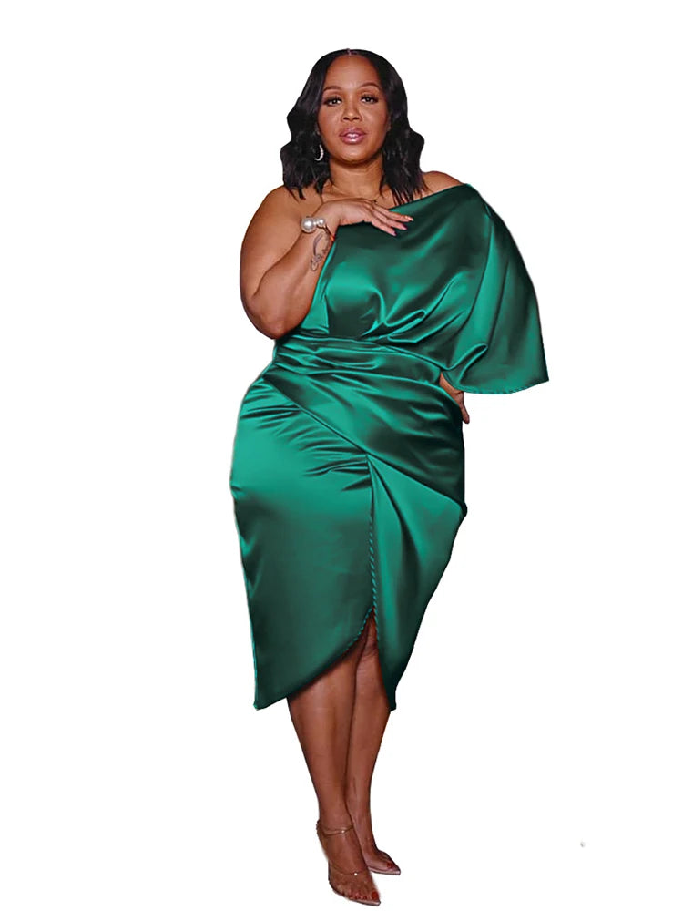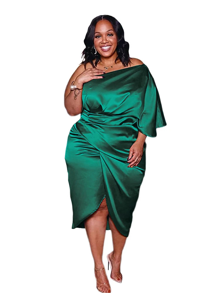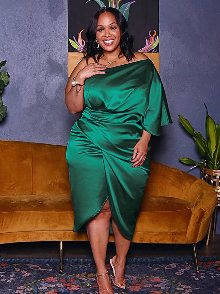 Plus Size Women Clothing One Shoulder Wedding Dress Big Lady Elegant Satin Short Dress Dresses 5xl Wholesale Bulk Dropshipping