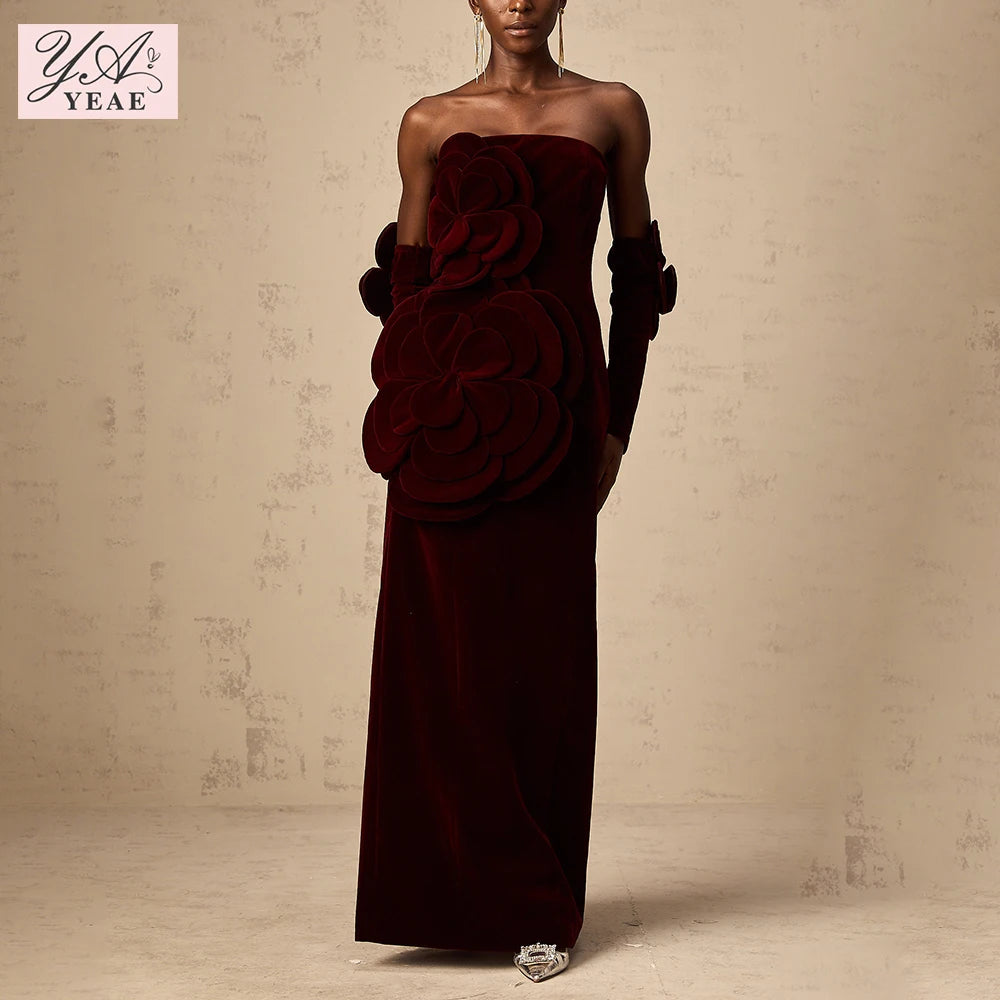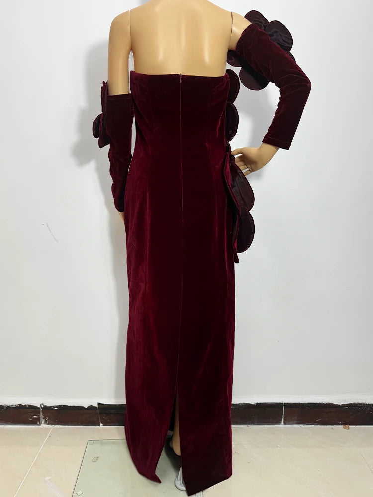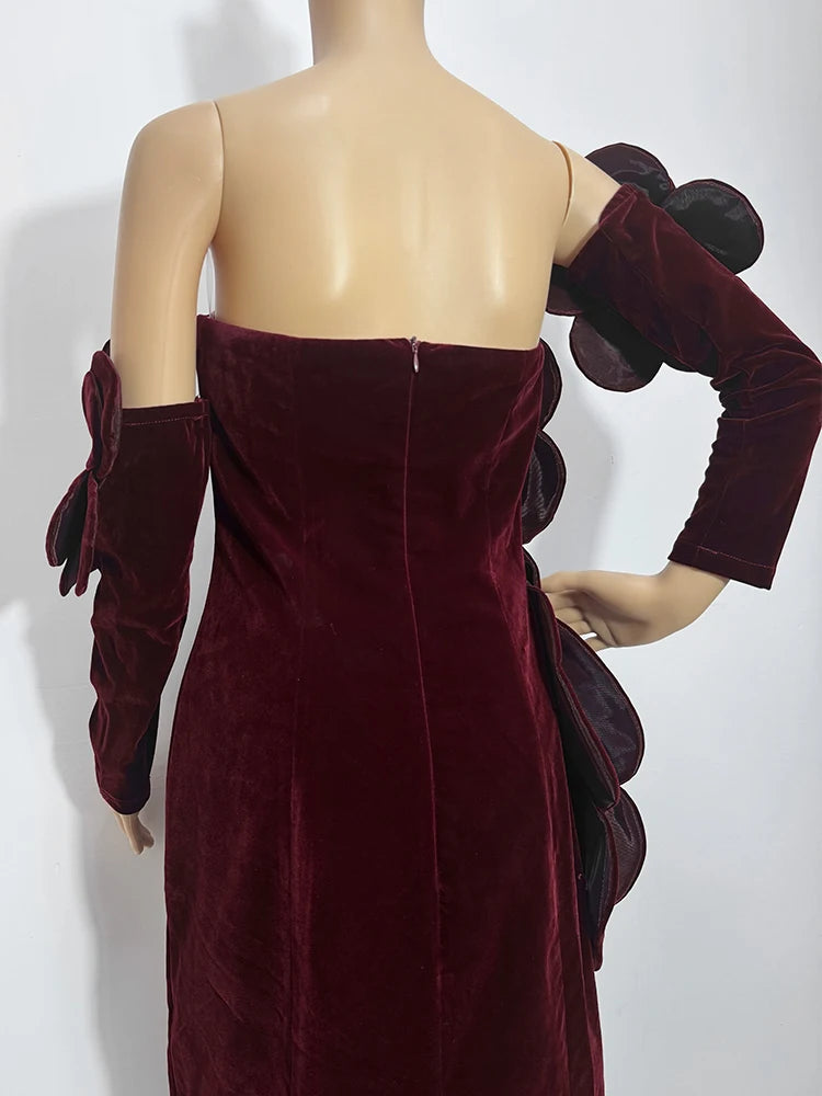 Solid Slimming Fashion Dresses for Women Strapless Sleeveless Patchwork 3D Flower Elegant Dress Female Clothing New