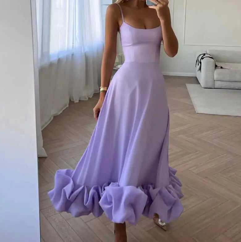 Spring And Summer New Fashion Suspender Large Swing Flower A-line Solid Color Dress For Women,6 Colors