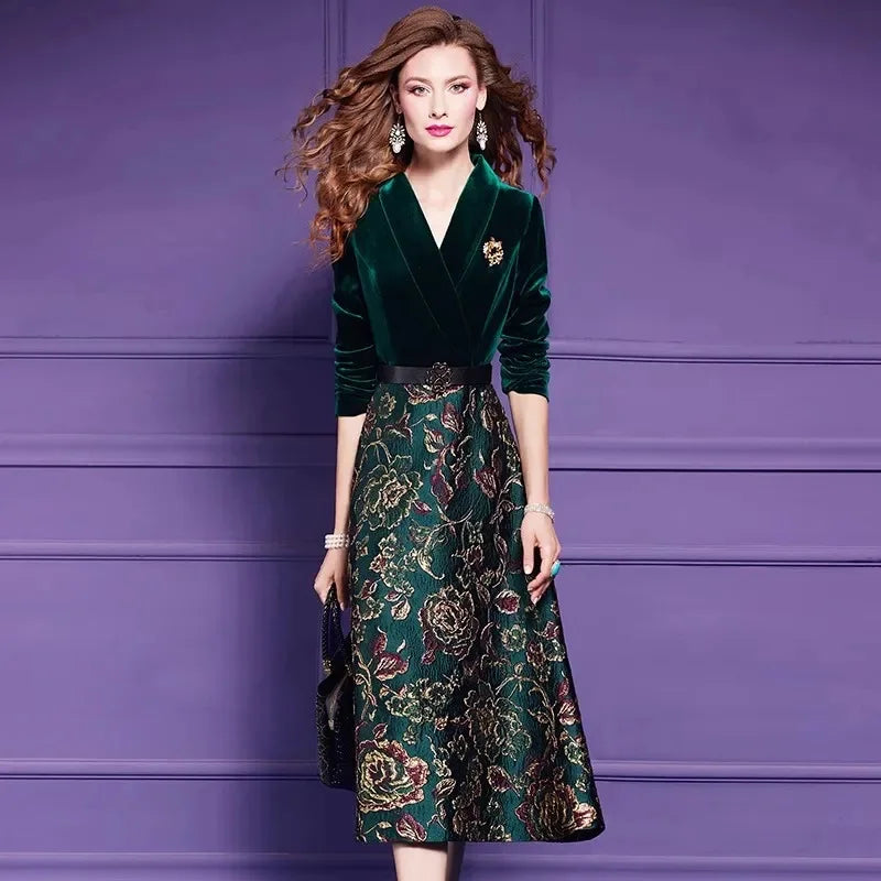 Spring Autumn Dress High End Women's Elegant Dresses Female Jacquard Gold Velvet Korean Slim Evening Party Female Maxi Vestidos