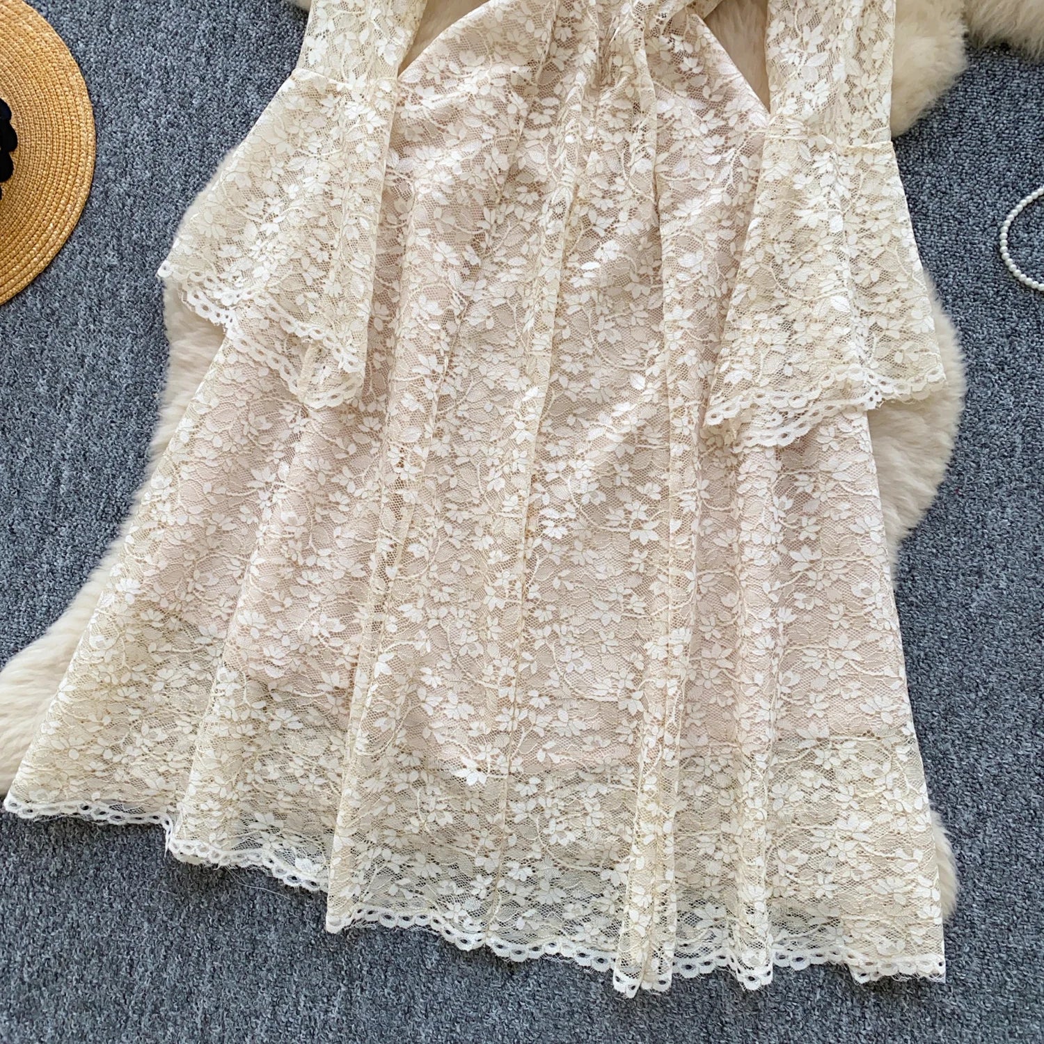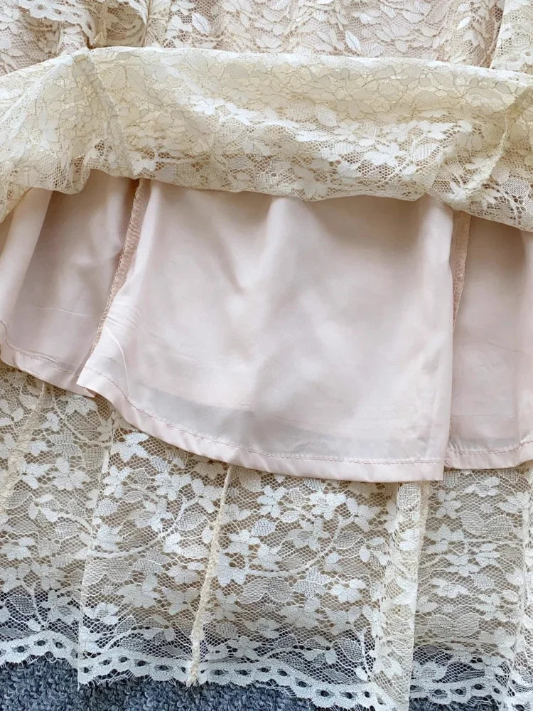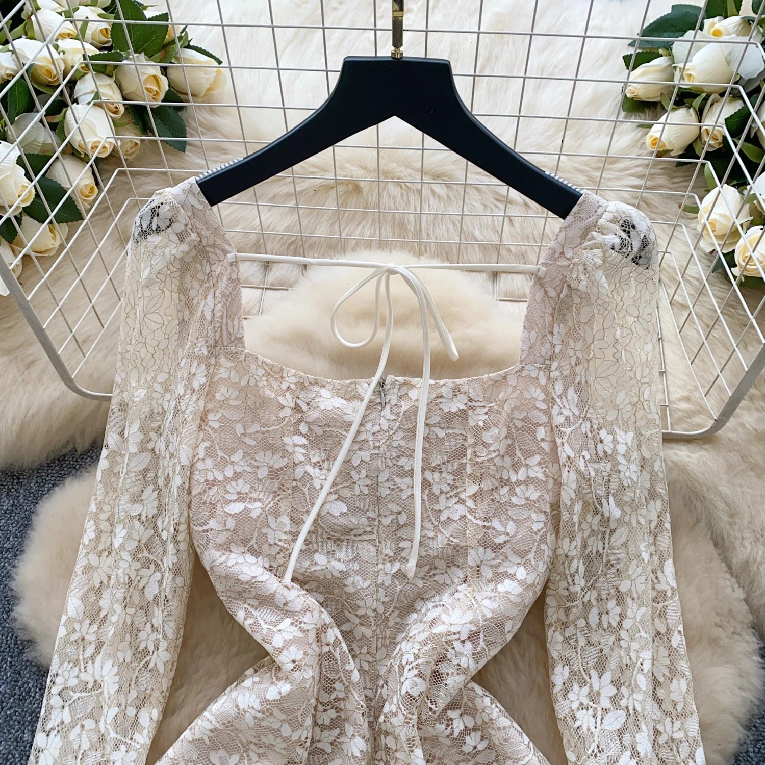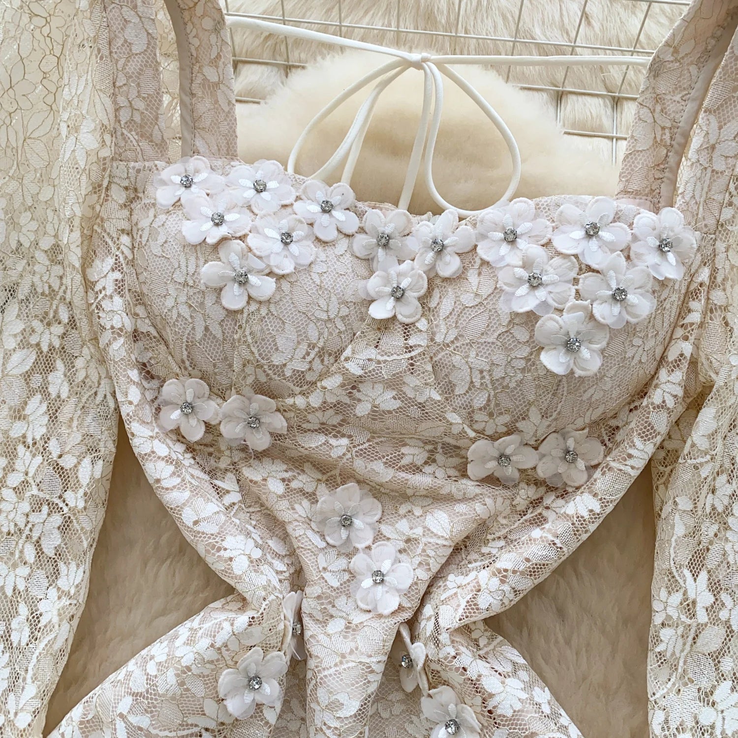 Spring France Elegant Vintage High End Evening Dress Women 3D Flower Lace Hollow Out Party Dress Female Casual Chic Clothing New