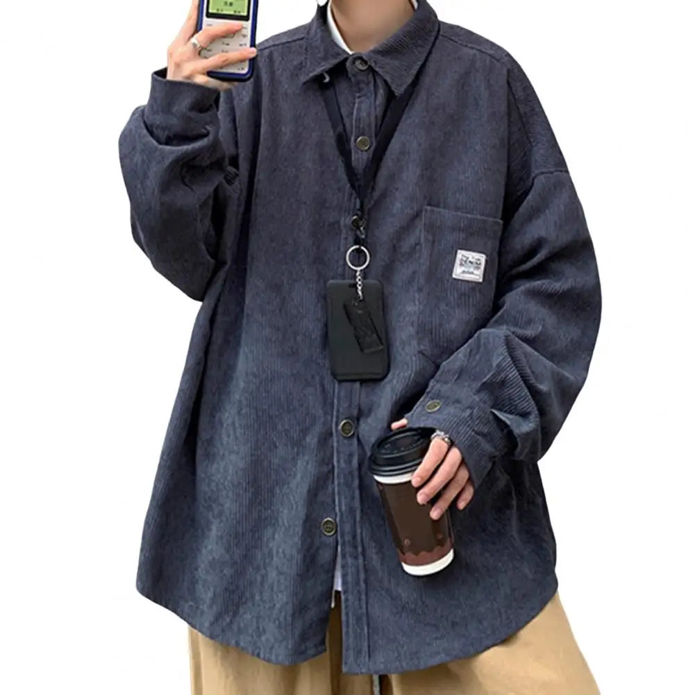 Spring Shirt Single-breasted Placket Casual Warm Corduroy Patch Pocket Men Tops Men Tops for Work