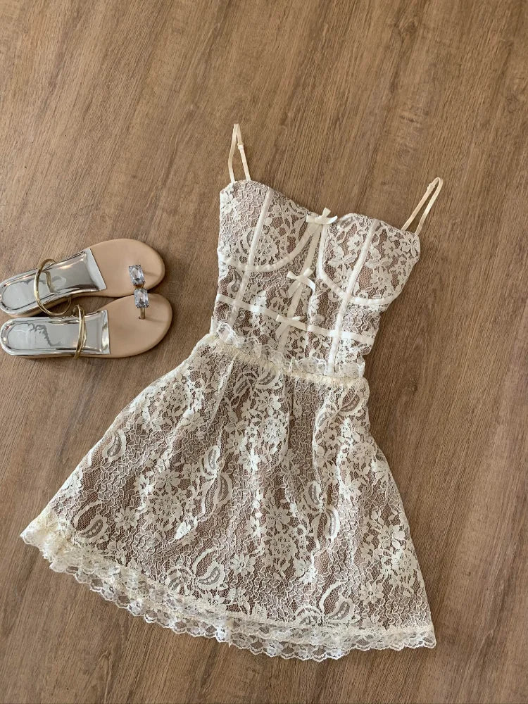Spring Sleeveless Lace Dress Women Elegant Spaghetti Strap Slim Fit Floral Lace Party Dress Sexy Chic Casual Dress Outfit 2025