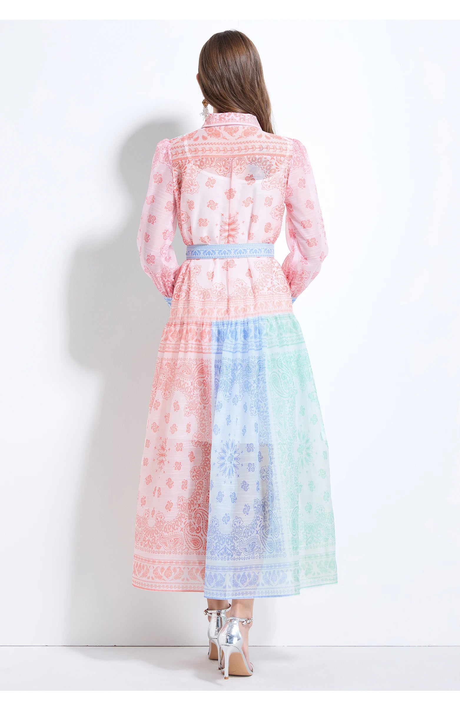 Spring Summer 2025 New Women Fashion Rainbow Print Elegant Shirt Long Dresses Vintage Single Breasted Party Dress Bohemian Trend