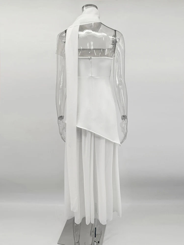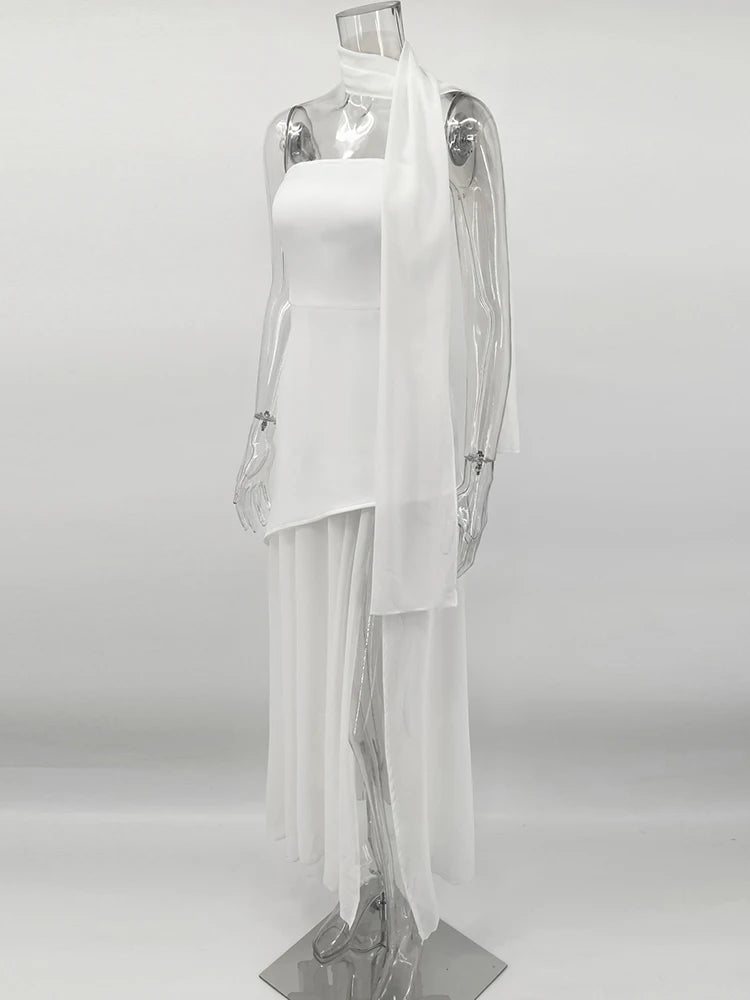 TARUXY Fashion Strapless Dress With Ribbon Female Elegant Sleeveless Mesh Beach Vacation Long Dress 2025 Spring New Women Dress