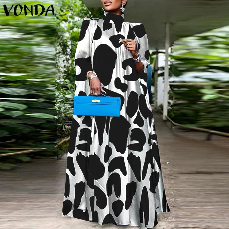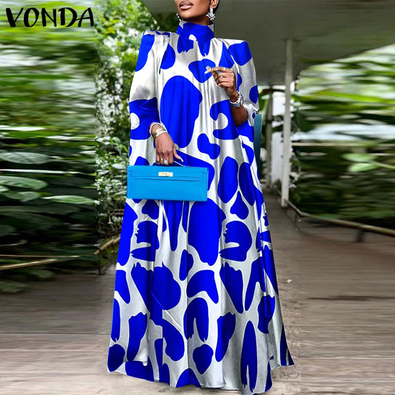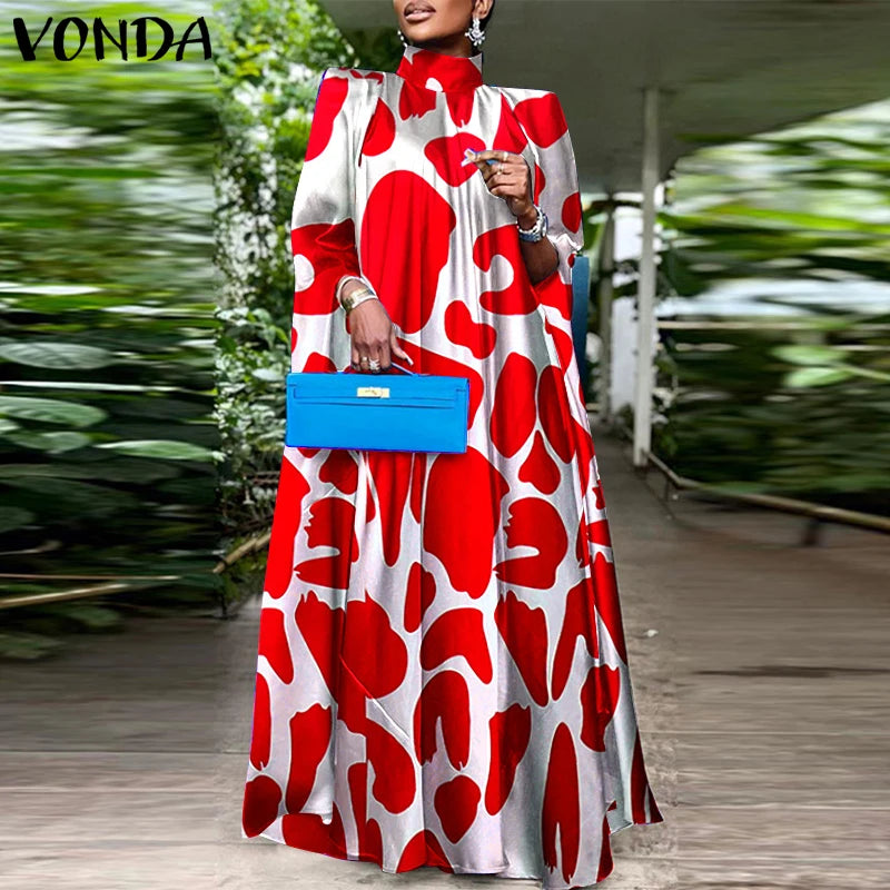 VONDA Women Elegant Printing Maxi Long Dress 2024 Casual Stand Collar Robes Bohemian Bat-wing Sleeve Party Vestidos Oversized