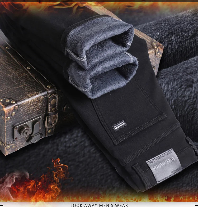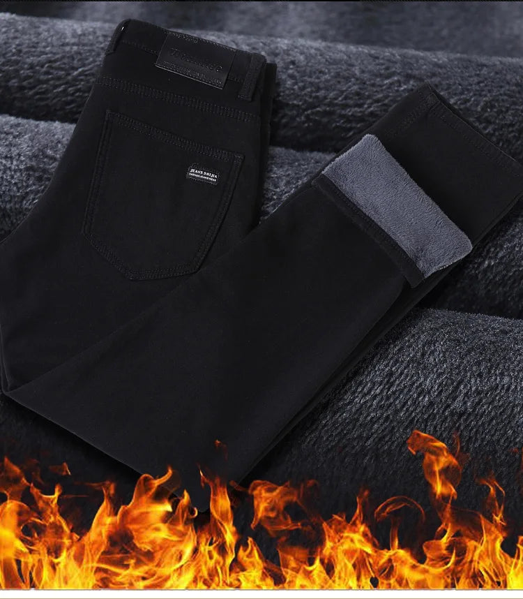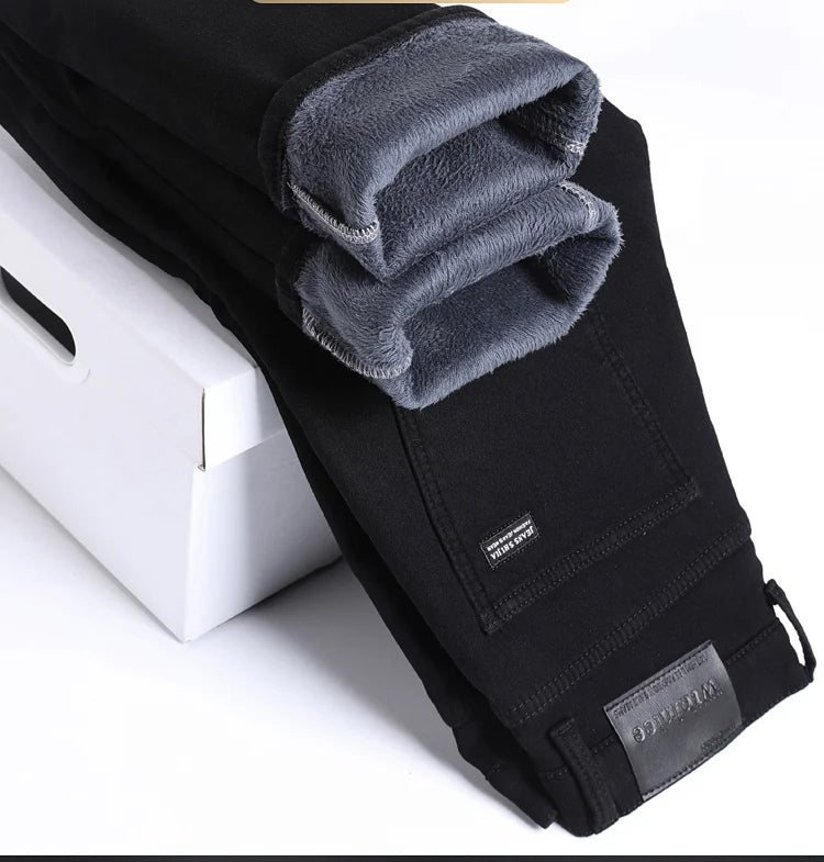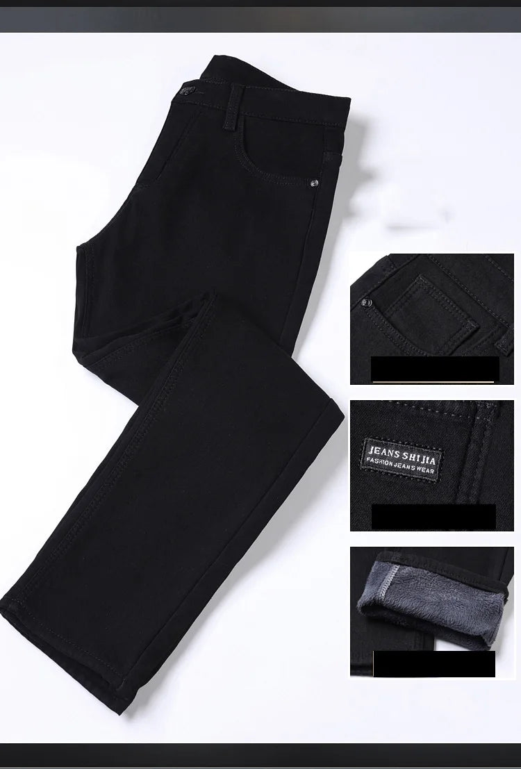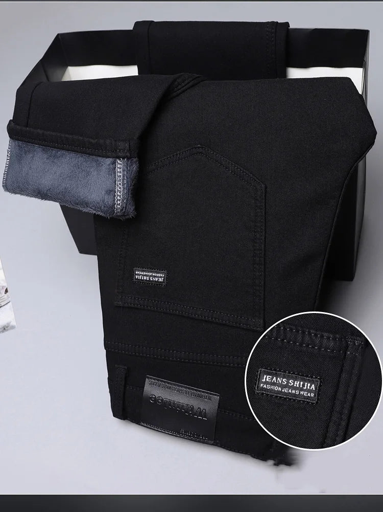 Winter Fleece Thick Warm Men Jeans Slim Skinny Stretch Straight Classic Version of Black Denim Plush Pants Male Brand Clothing