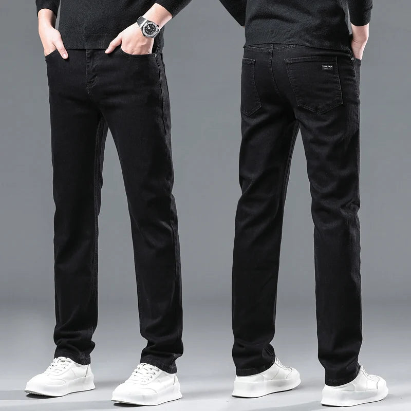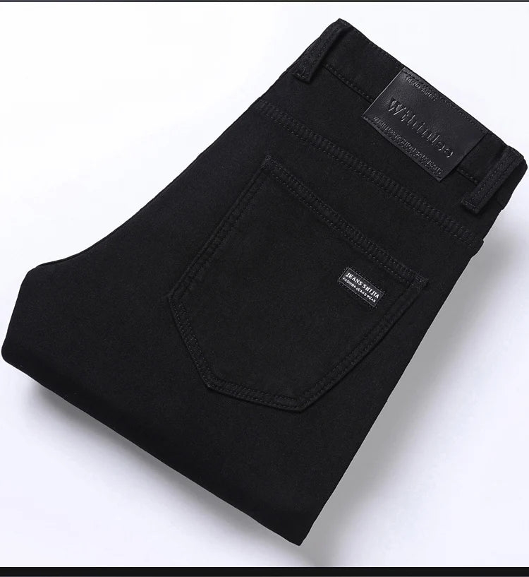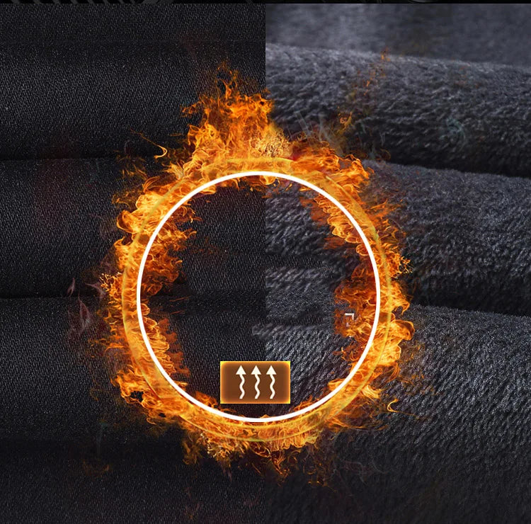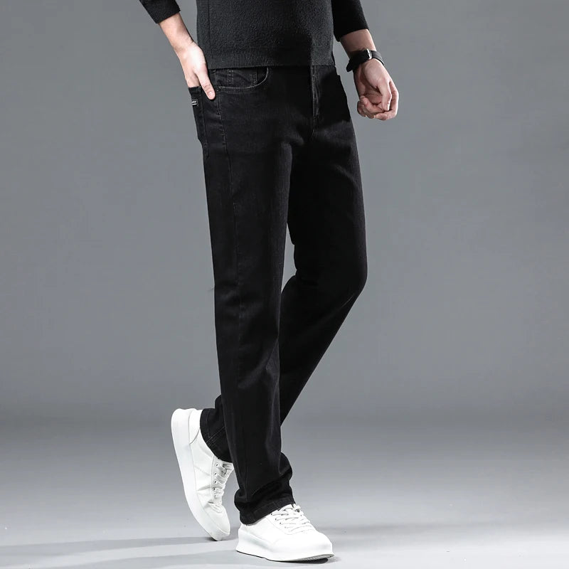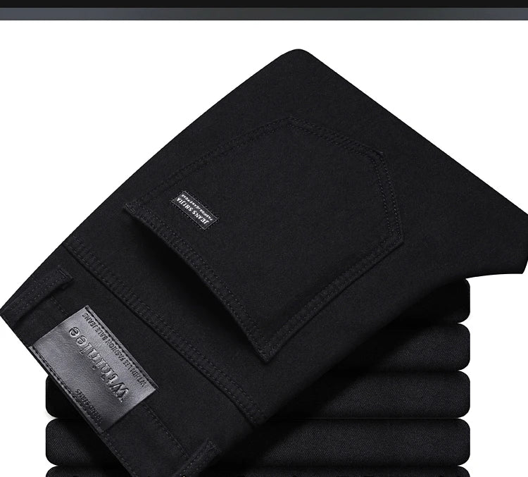 Winter Fleece Thick Warm Men Jeans Slim Skinny Stretch Straight Classic Version of Black Denim Plush Pants Male Brand Clothing